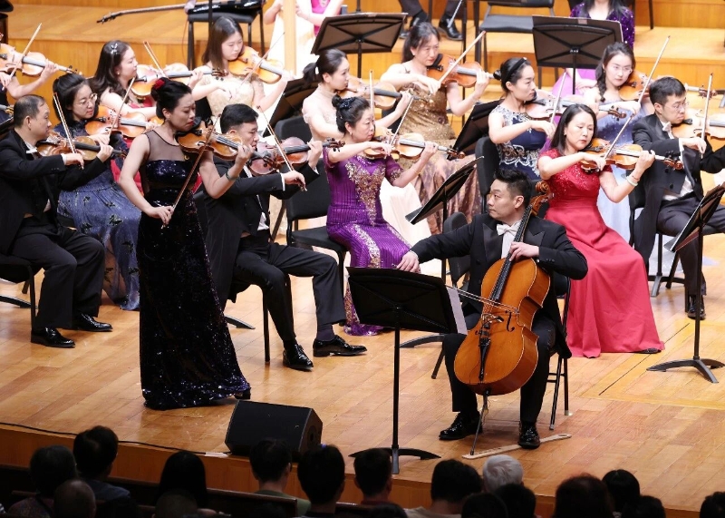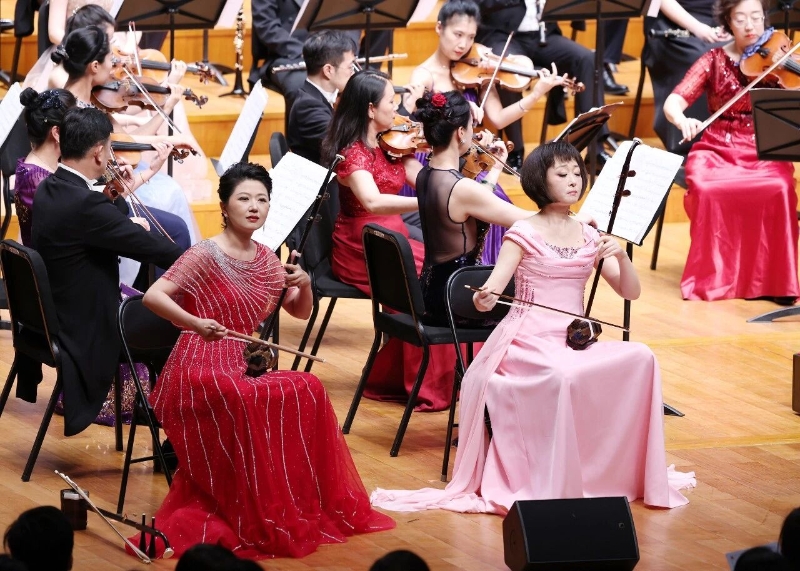 當二胡演奏家李峰、諸葛旭佳攜手與樂隊奏響《紅絲絨》時,二胡細膩婉轉的音色,與交響樂隊的恢弘氣勢碰撞融合,既有民族音樂的溫婉柔情,又有交響樂的大氣磅礴,紅絲絨代表愛情和好運、高雅和浪漫,演奏家通過二胡的多變音色表現(xiàn)出細膩的情感變化,將柔美抒情與激越昂揚有機融合在一起。