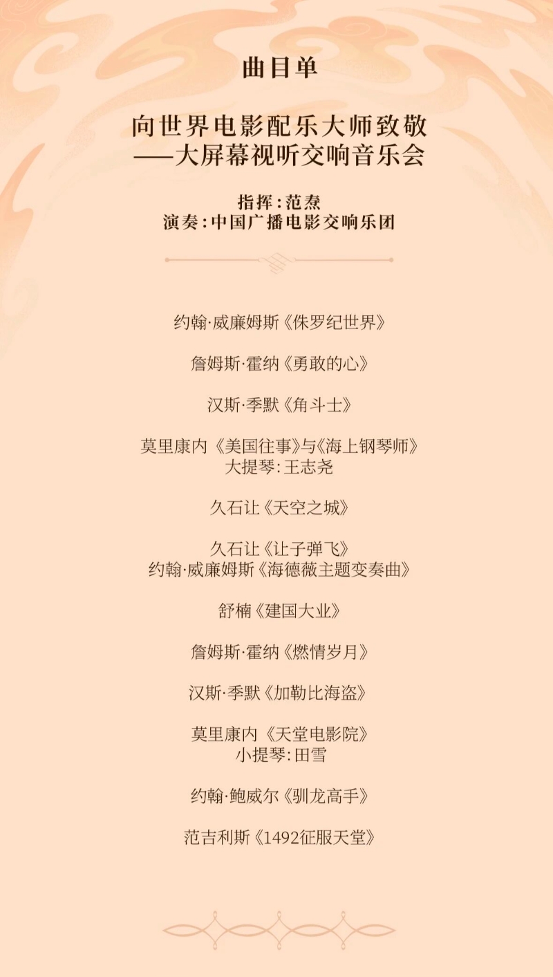本場音樂會邀請了各國駐華使節、國際組織代表等近300名中外嘉賓到場。中國電影樂團以“向世界電影配樂大師致敬”為主題,通過大屏幕視聽交響的創新形式,《建國大業》《加勒比海盜》《侏羅紀世界》《海上鋼琴師》等中外經典電影配樂在鋼鐵與光影交織的空間中煥發新生,展現了中華文化的獨特魅力,也通過中英雙語屏顯和精心的曲目編排,傳遞出開放、合作、共贏的理念。