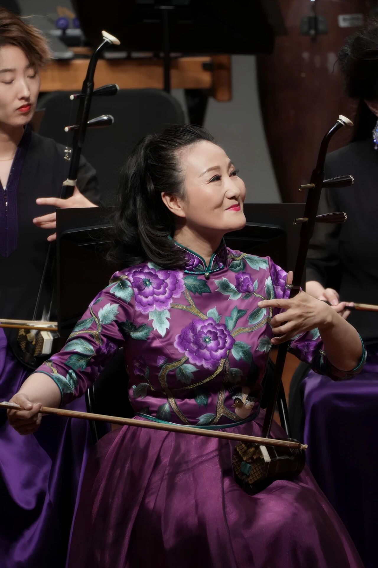 接下來(lái),《花好月圓》《彩云追月》《步步高》三首經(jīng)典民樂(lè)名曲聯(lián)奏耳熟能詳?shù)淖髌方?jīng)民樂(lè)大師彭修文先生改編后,既保留了原曲的靈動(dòng)雅致,又融入了民族管弦樂(lè)的豐富層次,令人心曠神怡,陶醉其中。